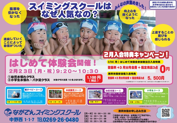 詳細・お申込みはスイミングフロント又はお電話でお願いします。