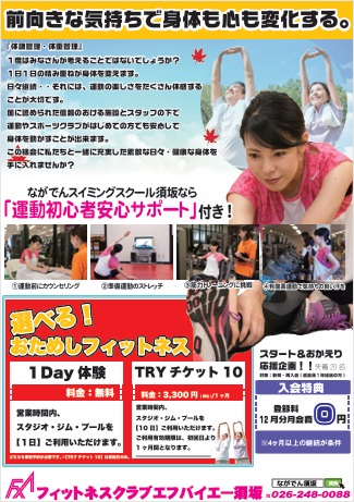 フィットネスクラブFXA須坂では、『選べる!おためしフィットネス』選べる体験プランが登場!
