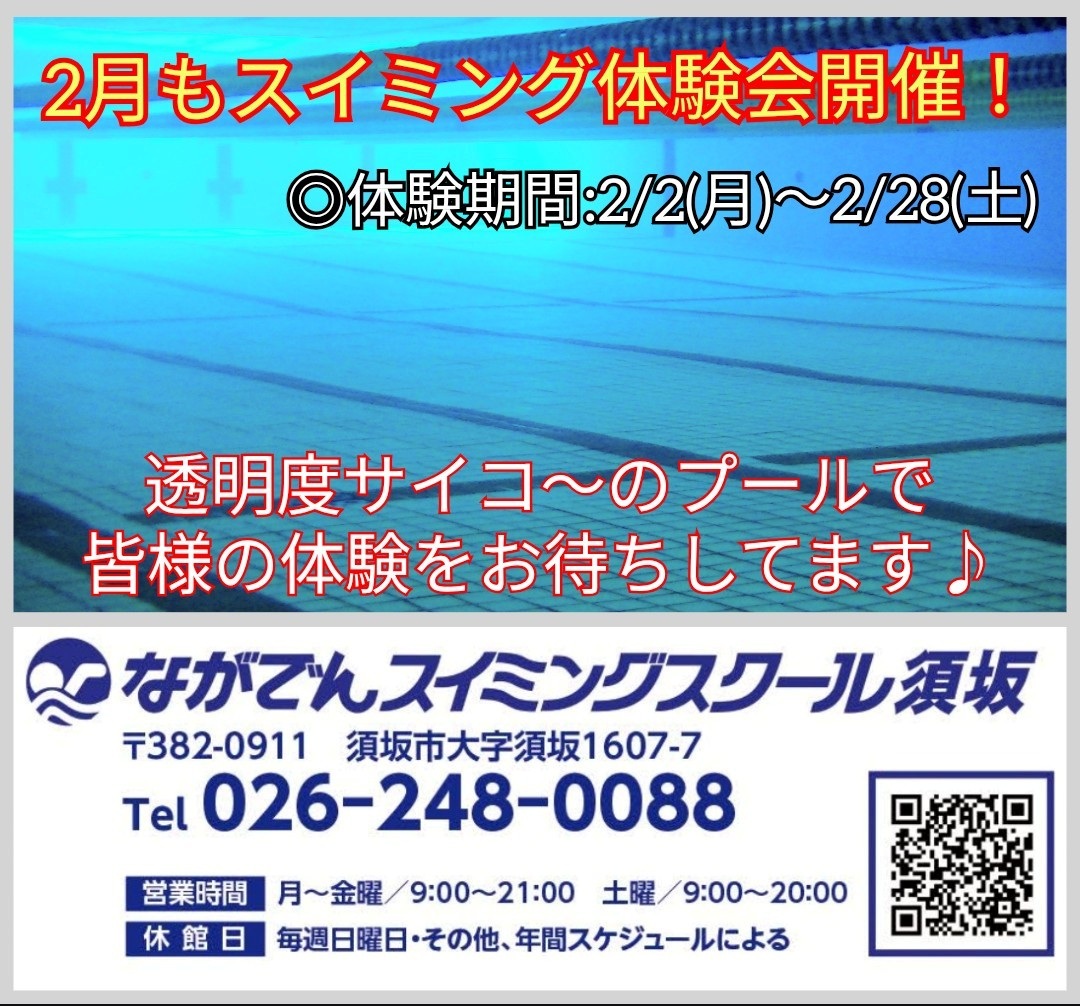 ◎ 体験期間:2日(月)~28日(土) 冬でも丈夫なカラダづくりにスイミングはじめましょう。