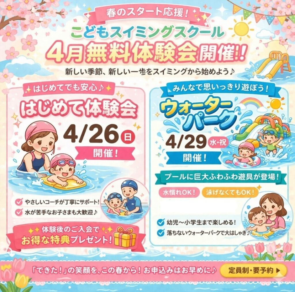 ※4月26日(日)はじめて体験会参加者当日入会となっております。